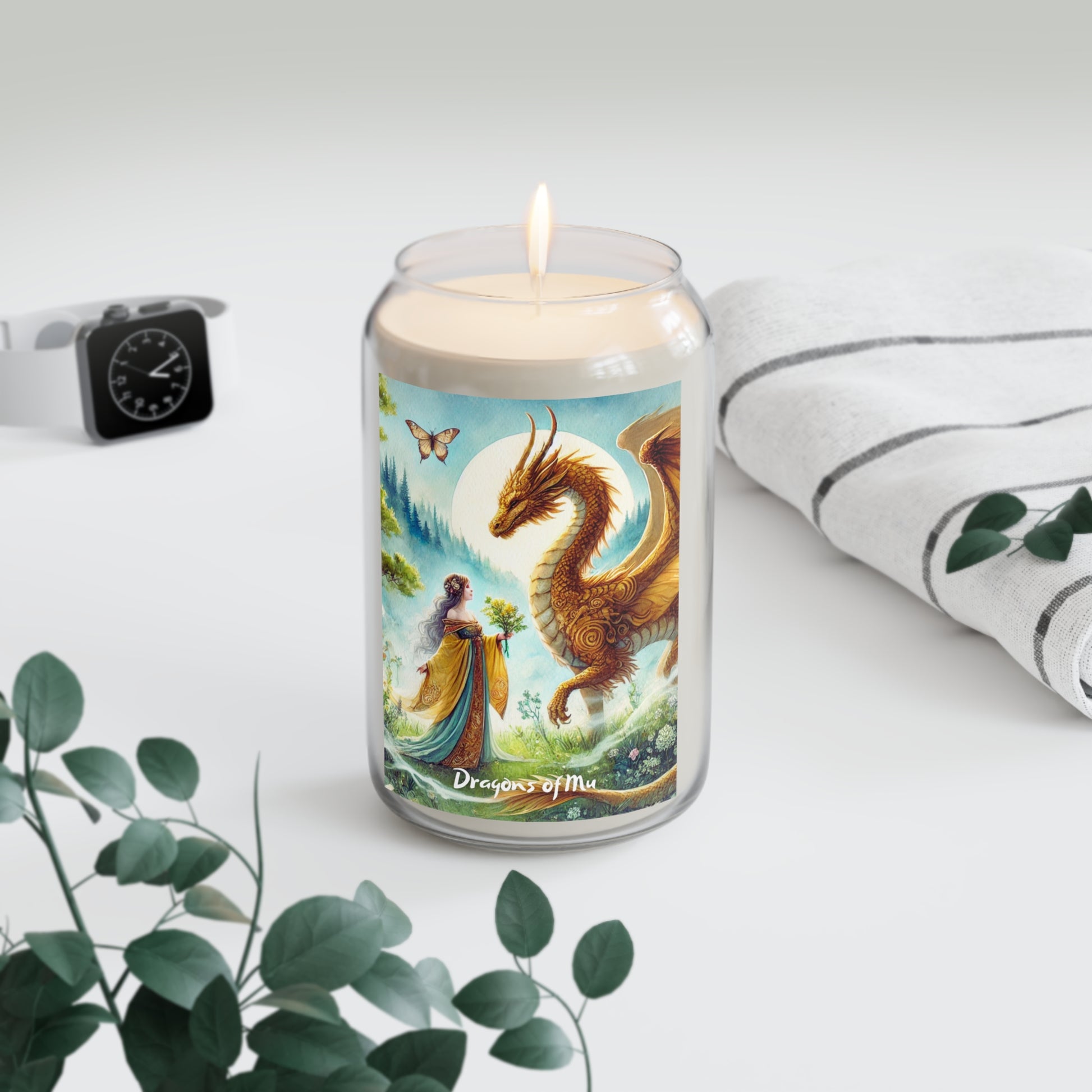 Transform your space with this beautiful, eco friendly, soy candles. This Golden Dragon of Mu and Pleiadian Star Mother can help you focus on cultivating your inner resources, beauty and strength. Perfect for creating a sacred space for meditation, magic spells, or relaxation. This Dragon themed candle comes in soothing fragrances of Vanilla Bean, Comfort Spice, or Sea Breeze, and makes any room feel special and inviting. Ideal for your personalized altar, gatherings, or self-care moments. Perfect for gifting or personal enjoyment during holidays and birthdays. Each hand-poured candle promises a long burn time of 70-80 hours, ensuring you can enjoy their delightful scents for many moments to come.